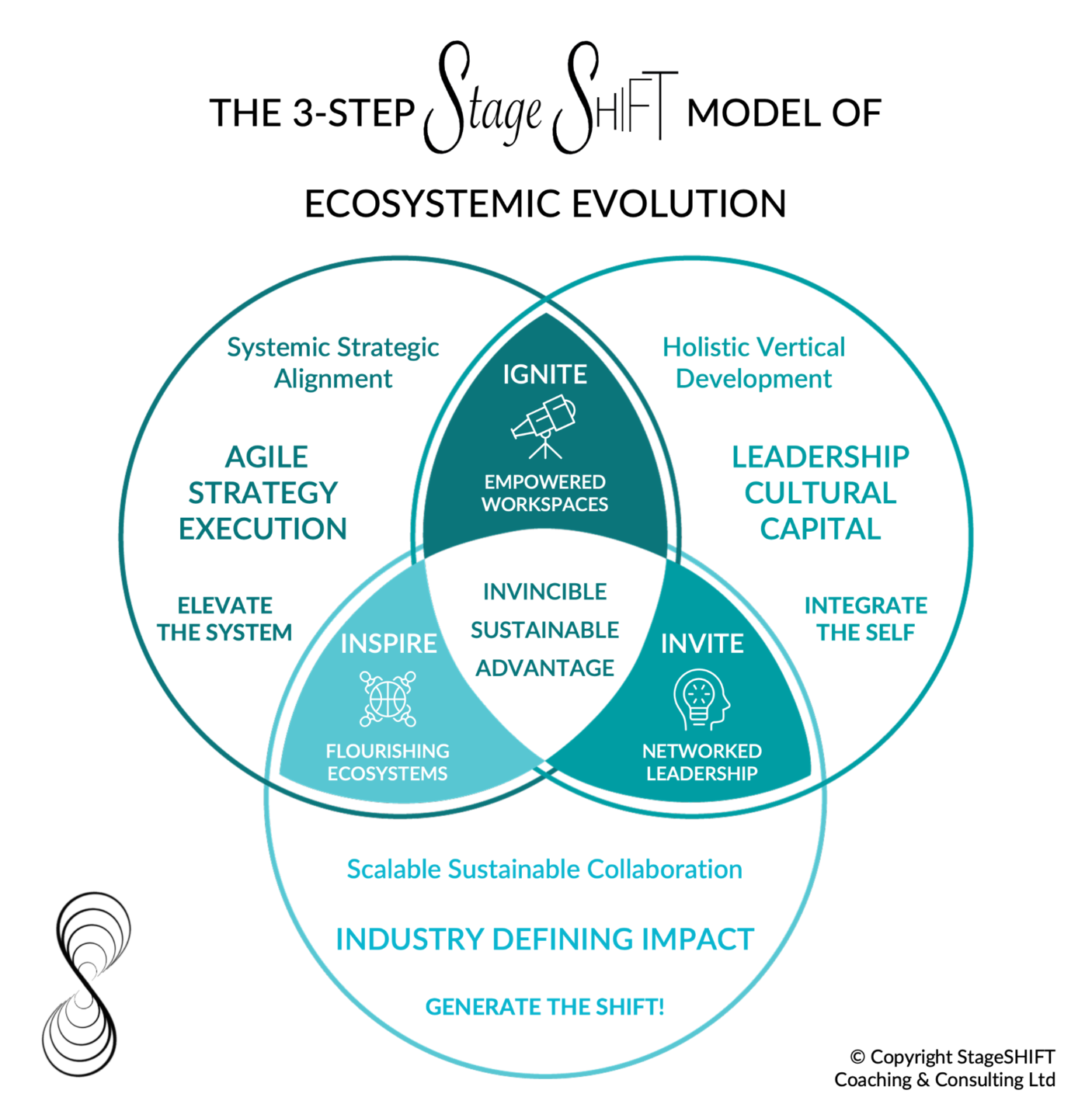 StageSHIFT liberates the latent inner power of Senior Executive Leaders and Coaches to develop the Open Synergist Mindset, Heartspace and Soulsense that enables them and their organizations and communities to flourish. With this level of Leadership Cultural Capital, we can lean into inter-systemic complexity and chaos, trust the flow of emergence despite uncertainty, and treasure community to include all stakeholders. As a result, we lead ecosystemic renewal, scale sustainable growth, and  co-create a brighter flourishing future for all.