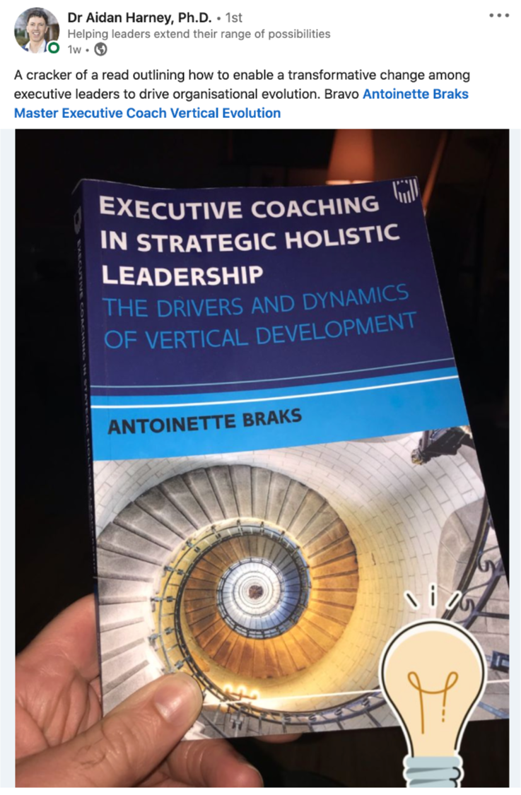 “It is more vital than ever before that leaders develop the ability to take multiple perspectives, think systemically, consider the long-term effects of decisions and base them on the best of available scientific evidence – this book offers a path to help leaders acquire these later stage characteristics.”