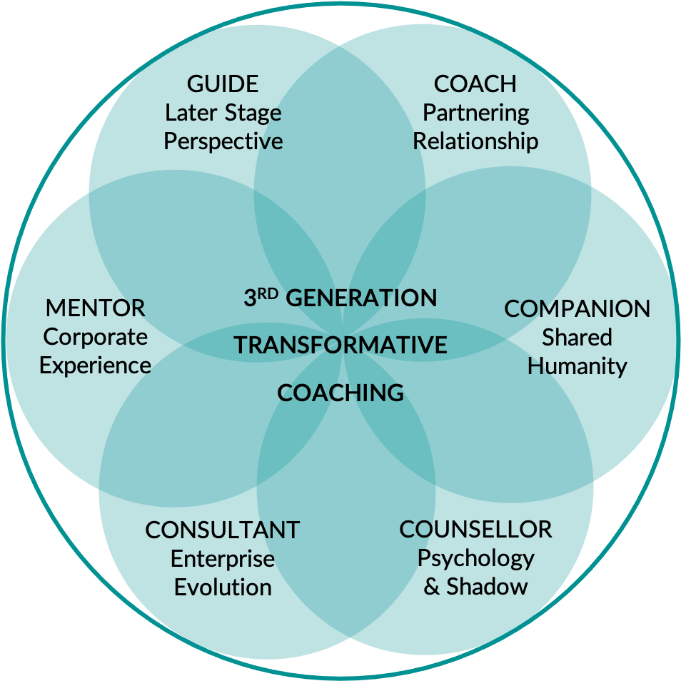 Transformative Coaching is an collaborative dialogical inquiry where the self-awareness and life experience of the Coach offers an extensive resource and expansive reservoir of consciousness for the client executive. It's an adventurous journey of awakening that invites deep insights, illuminates reactive patterns and power dynamics, and forges a holistic integrated identity.